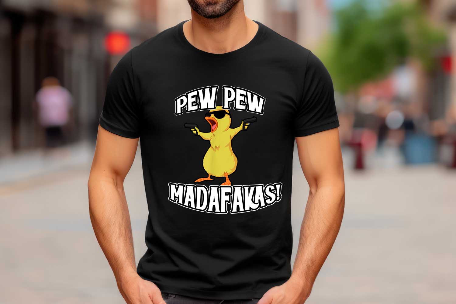 Pew Pew Madafakas Duck T-Shirt – Funny Gun-Wielding Duck Tee