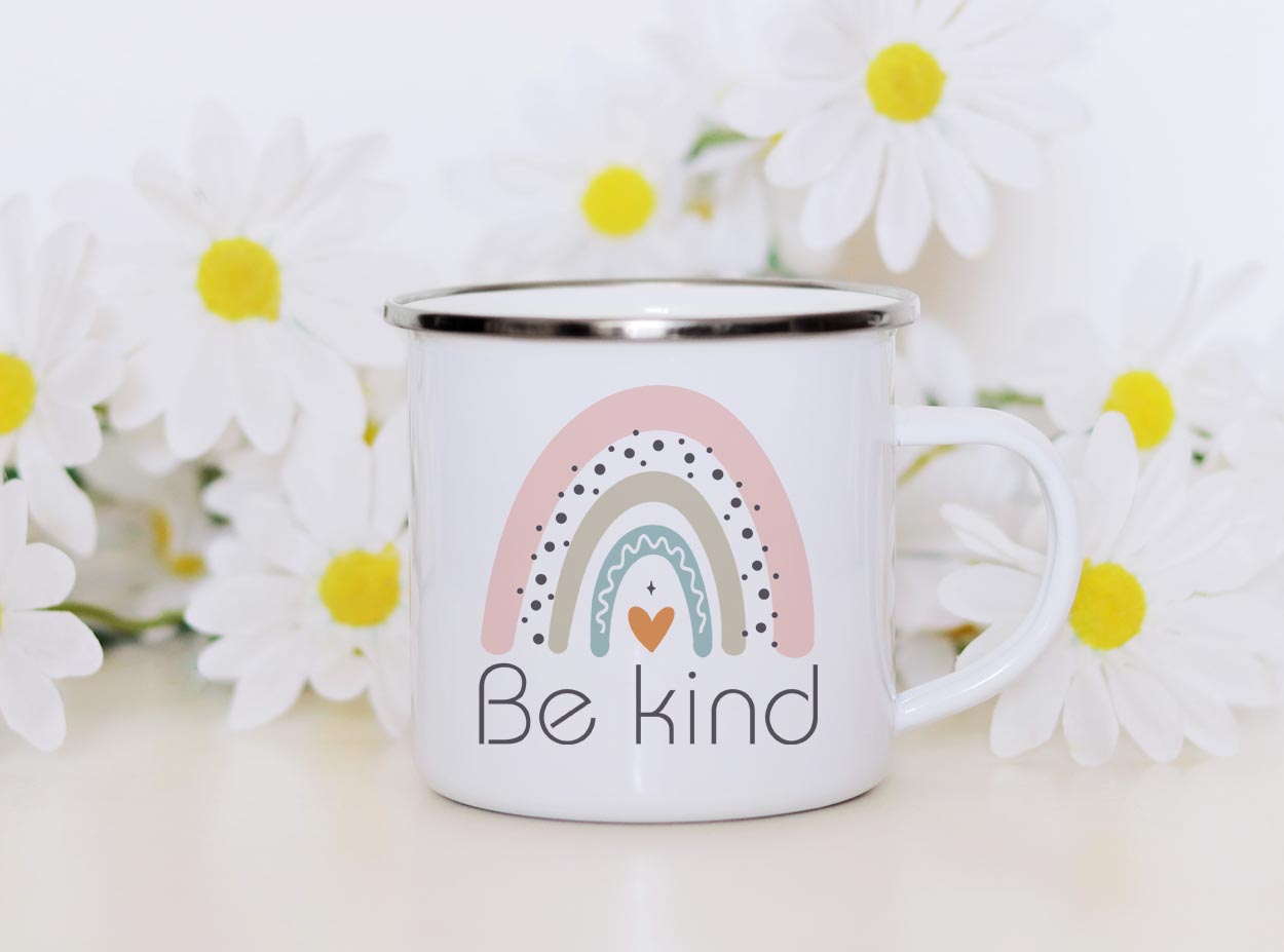Rainbow Be kind enamel mug